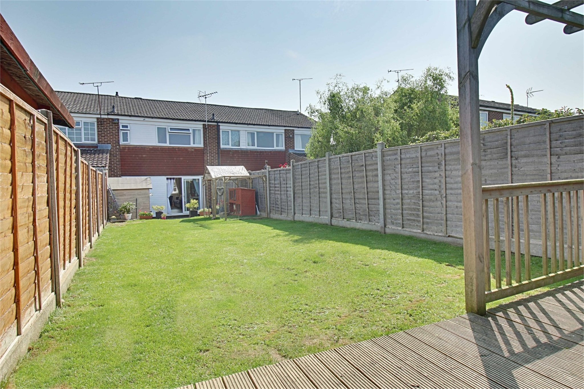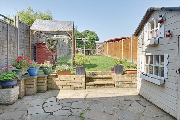 Landscaped rear garden, directly to the rear of the property is an extensive paved patio ideal for table and chairs and entertaining. Outside tap, steps up to further lawned garden. the garden measure approximately 55’ in length and has a sunny south facing aspect and backs onto open fields with some stunning views. To the rear of the property there is a raised decked terraced area, once again, ideal for table and chairs.