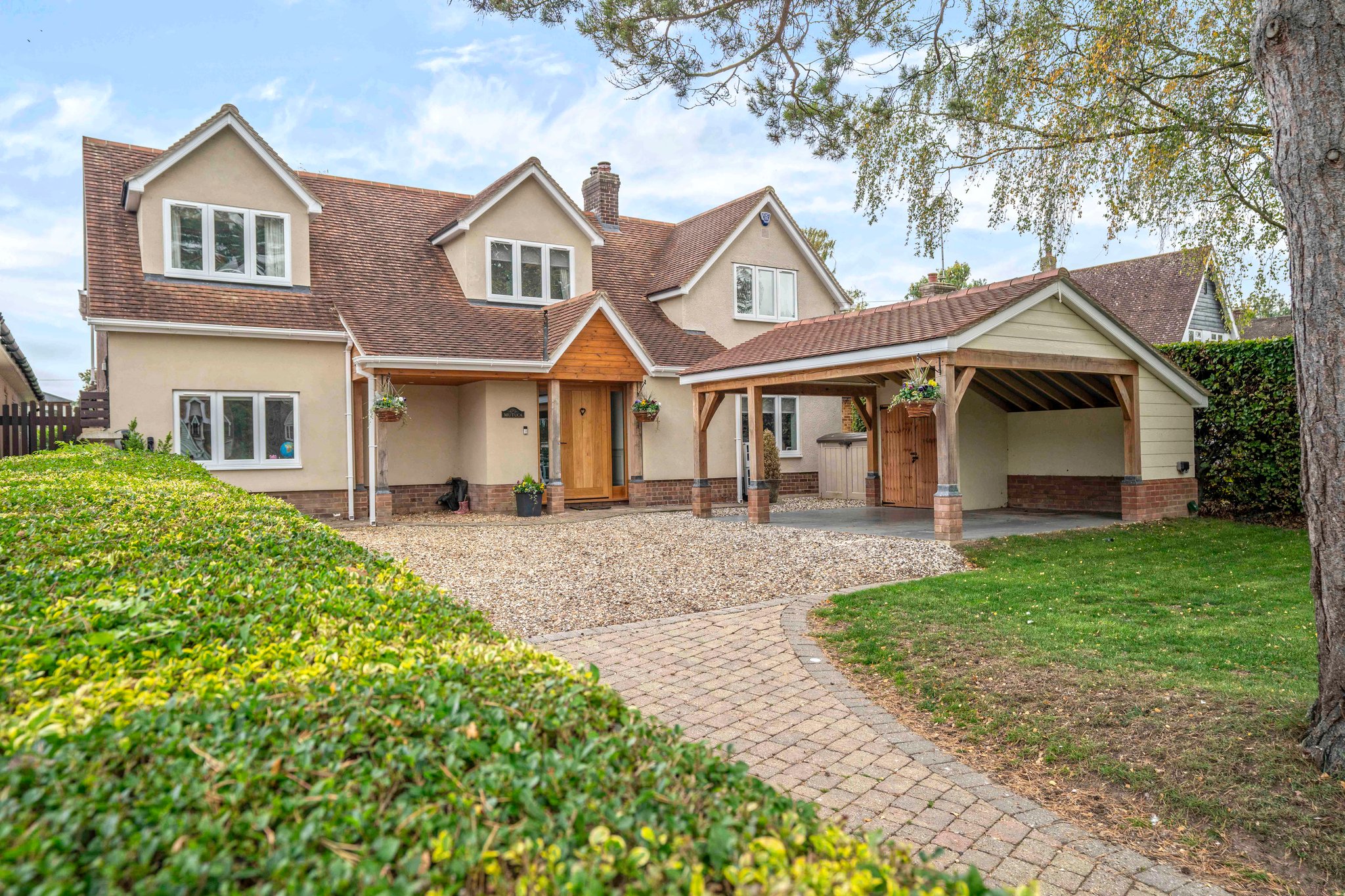 A spacious four bedroom detached family home which has been sympathetically extended and improved by the present owners, with a high quality designer feel throughout. The property enjoys a spacious open plan kitchen/family/dining room, large study, two further reception rooms, four bedrooms, two offering en-suites, dressing room, downstairs cloakroom, underfloor heating to the ground floor, air conditioning, Airsource heating, block paved drive, oak framed carport with storage.