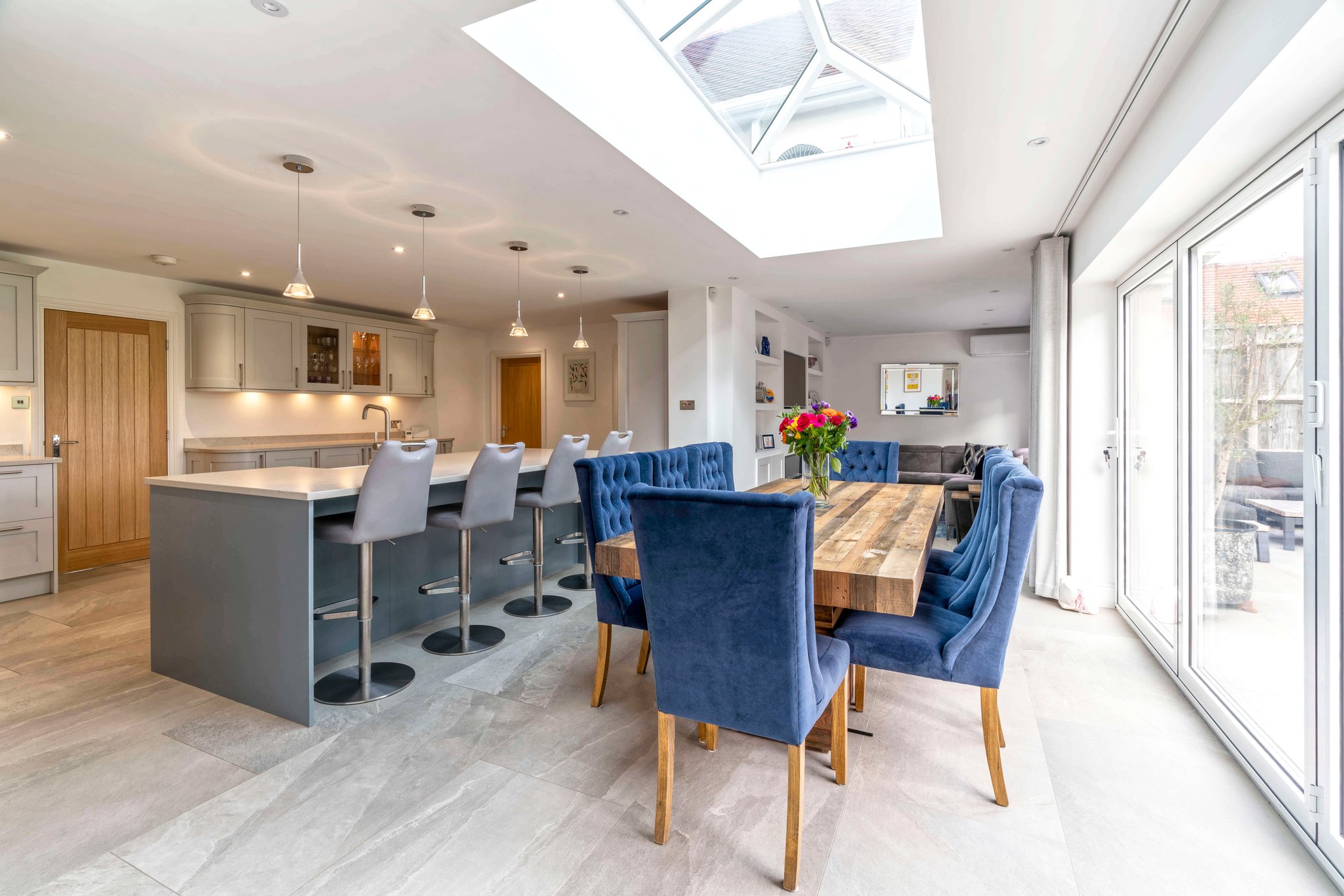 19’3 x 8’6 Illuminate by a large lantern and bi-folding doors to the garden, open through to: