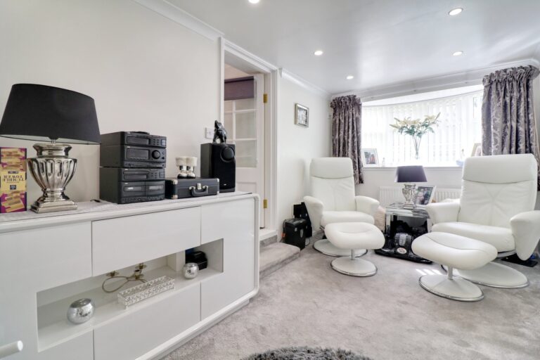 16' 8" x 7' 6" (5.08m x 2.29m) with a double glazed bay window to front, radiator, spotlighting, fitted carpet, carpeted turned staircase rising to the first floor landing.