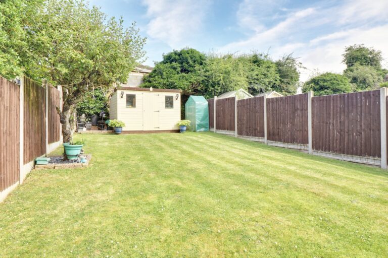 Directly to the rear of the property is a large decked entertaining area. Based on two levels, this area is secluded and private and benefits from lighting, power and outside tap. There are steps up to the lawned garden which measures approximately 45ft in length and is enclosed by fencing to all sides. There is a timber framed outbuilding/shed to the far end of the garden.