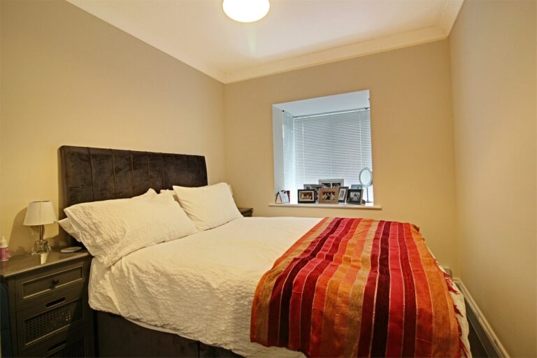 8ft6 x 8ft2 with a double glazed bay window to front, wall mounted Dimplex heater, built-in wardrobe with sliding doors, wooden laminate flooring.
