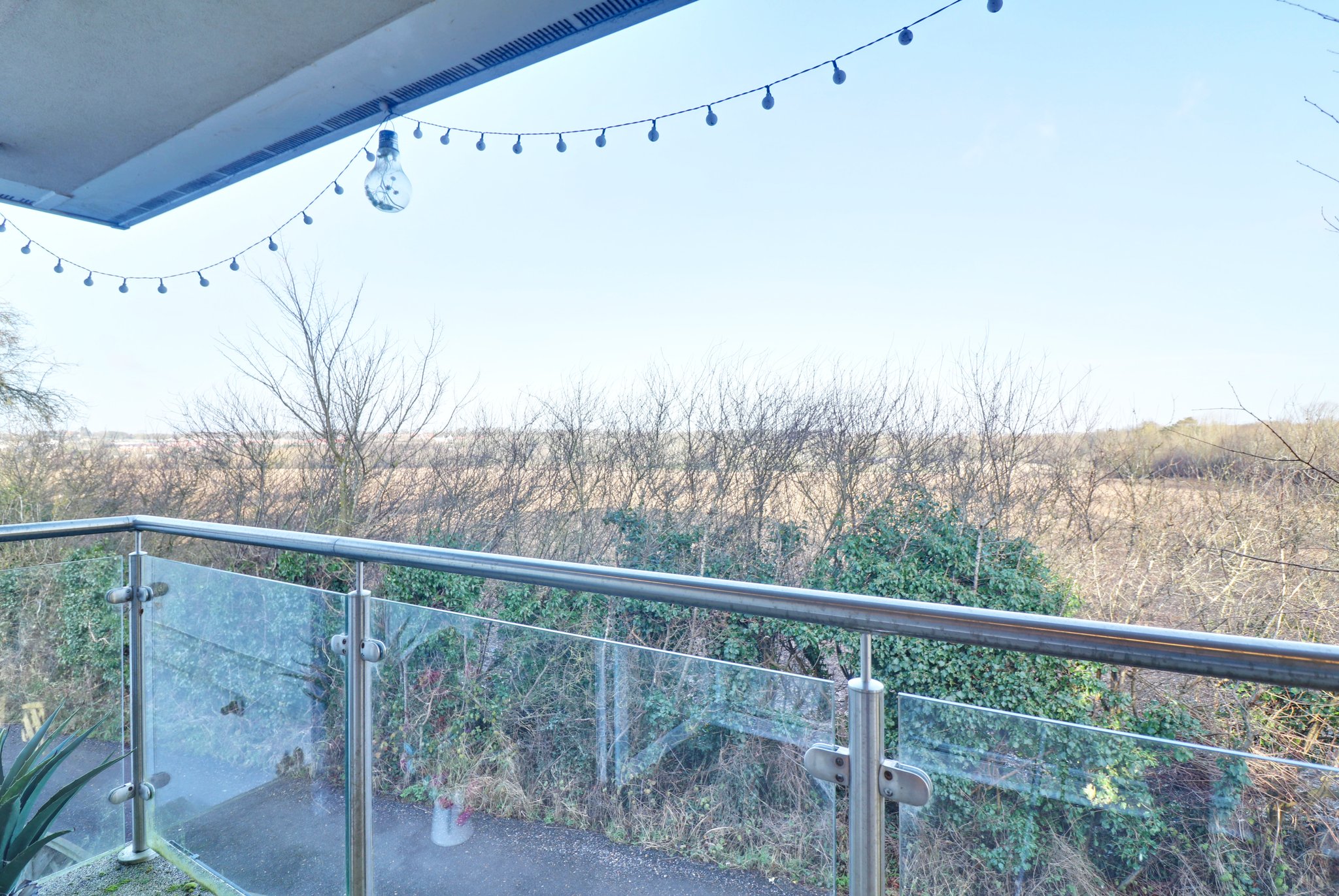 18’9 x 12’11 with large double glazed bi-folding doors opening to large private balcony with countryside views, TV point, double panelled radiator, built-in Sonos speakers, double glazed windows to side, fitted carpet, door to: