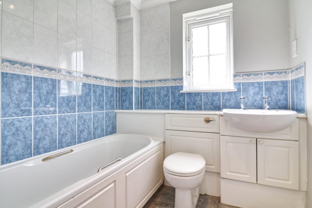 With opaque double glazed window to front, low level flush w.c., wall mounted wash hand basin, tiled splashbacks, single radiator, wooden laminate flooring