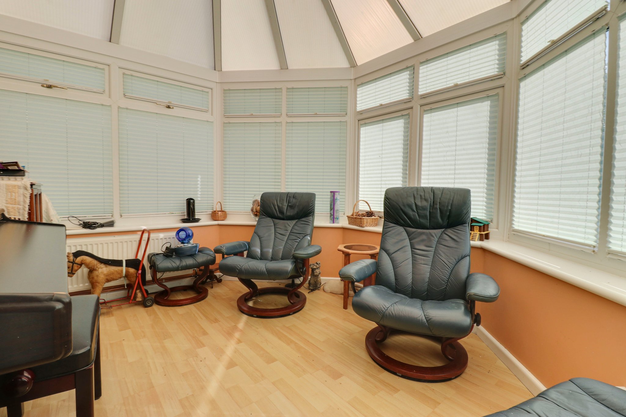 11' 6" x 9' 8" (3.51m x 2.95m) with double glazed windows to side and rear, radiator, wooden laminate flooring, double glazed door onto garden, ceiling fan and light.