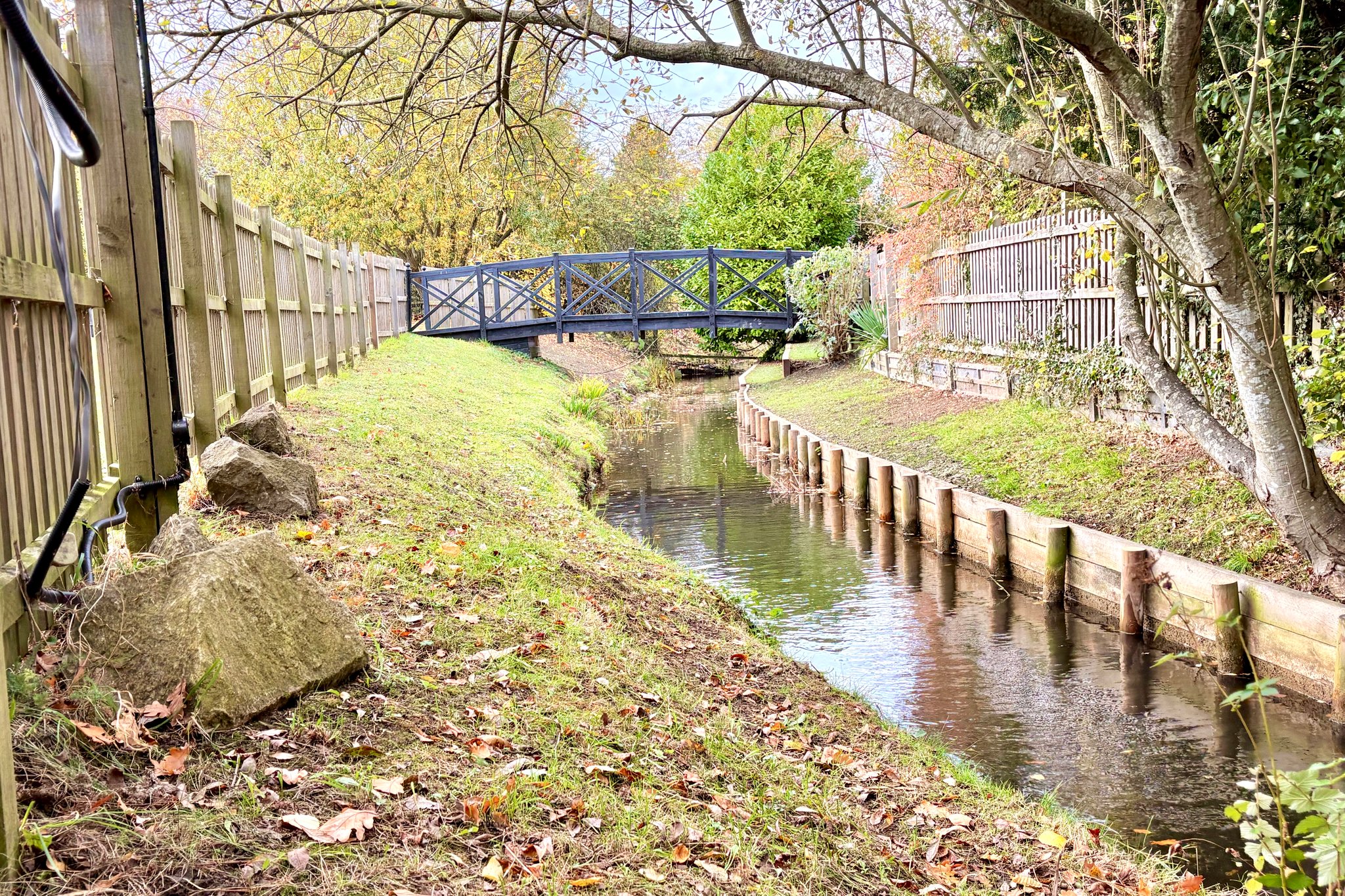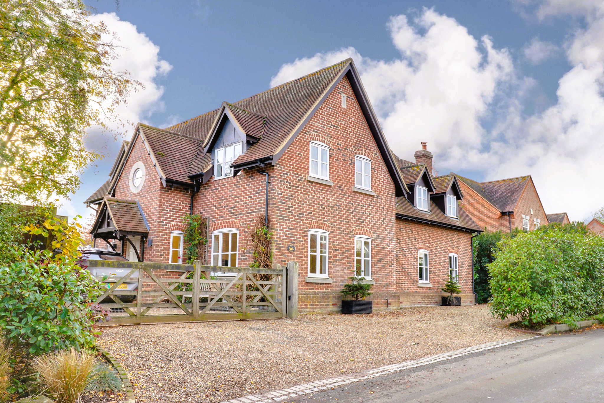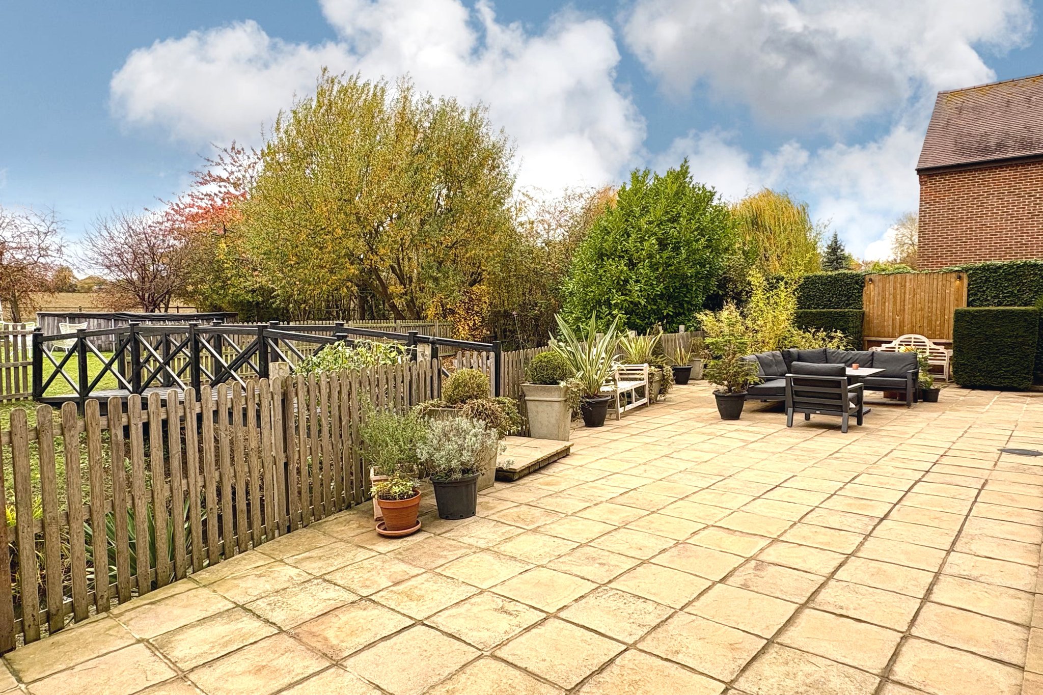 As previously mentioned, the property enjoys a delightful mature plot, extending to approximately 0.6 acre. Directly to the rear of the property is an extensive paved entertaining terrace with brick retained flower beds and an attractive bridge which crosses the brook, leading to the main garden area. The main area is laid to grass with various trees, post and rail fencing and wonderful views. There is a large storage area for garden equipment.