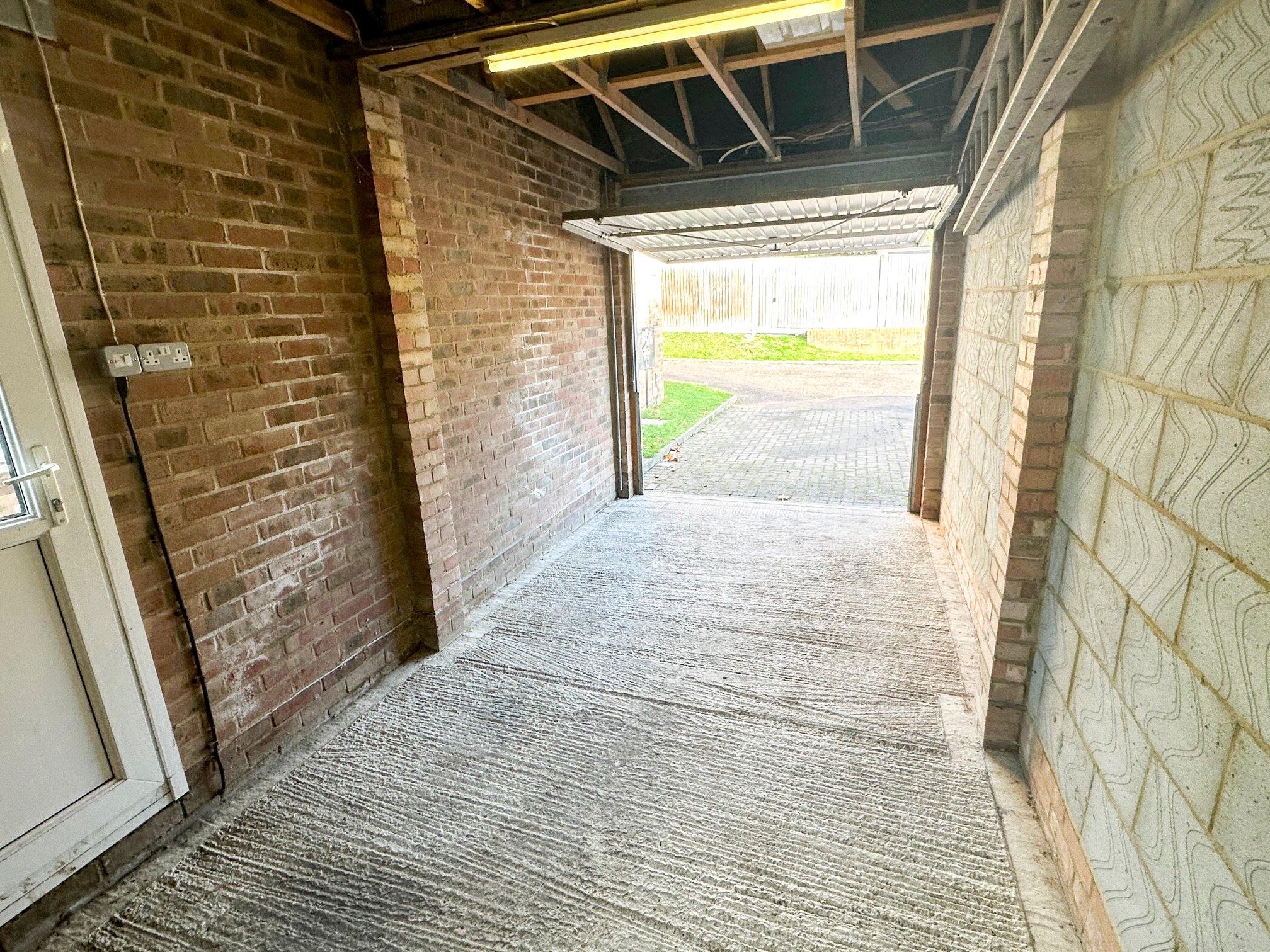 17' 6" x 8' 2" (5.33m x 2.49m) with an up and over door, power and light laid on, pitched roof with storage.